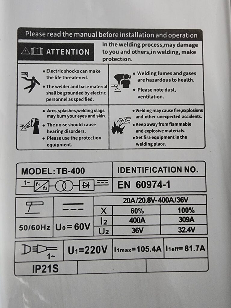 The Edon TB-400 arc welder is controlled by an IGBT that ensures exact current, low splash, and a smooth joint. The arc welding machine is easy to operate, even for entry-level welders.